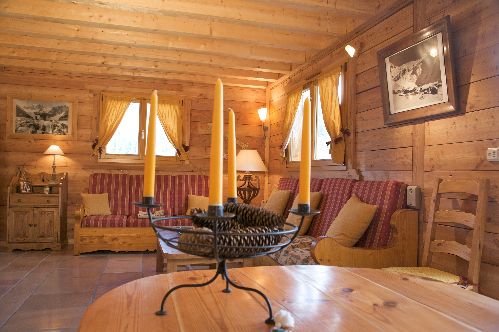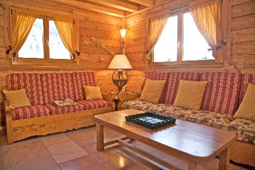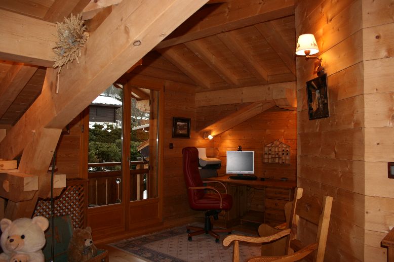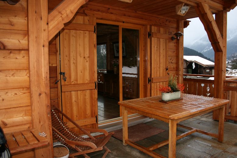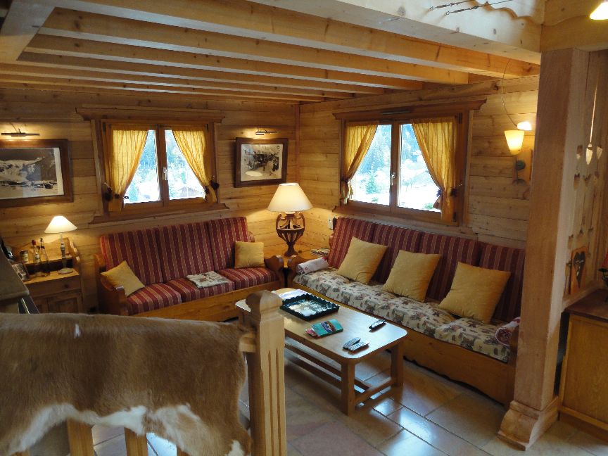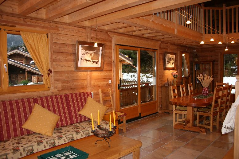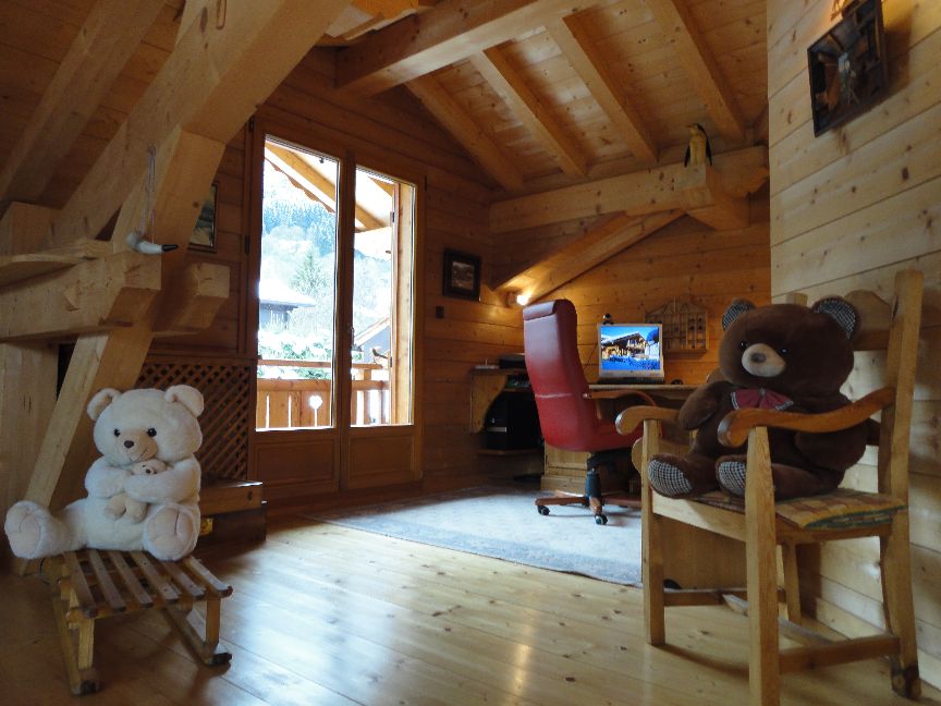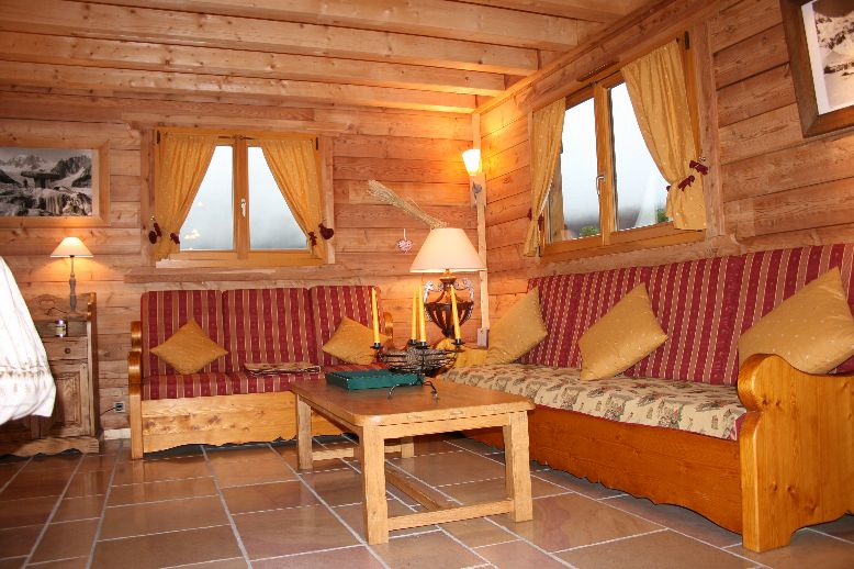 Un salon de repos, lecture, vue sur les Houches et massif du Mont-Blanc.