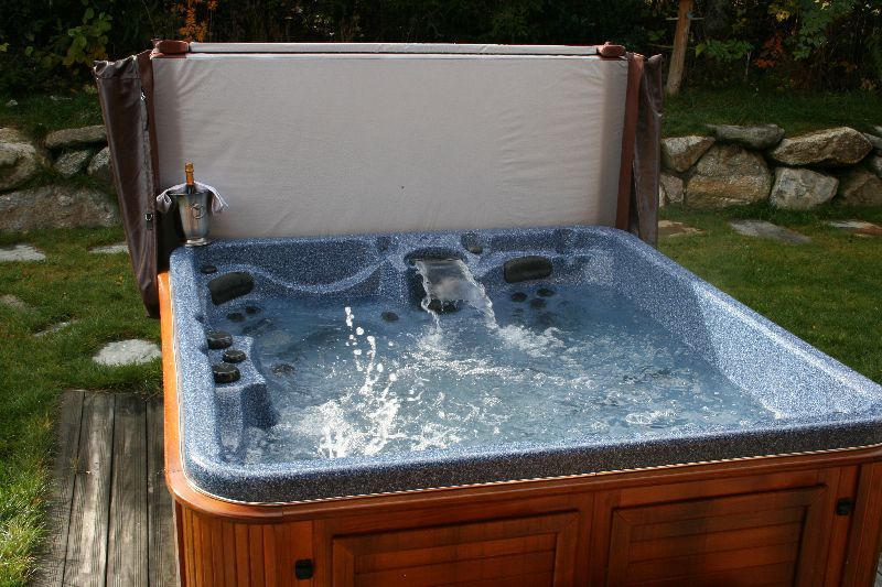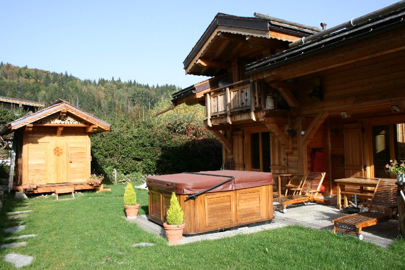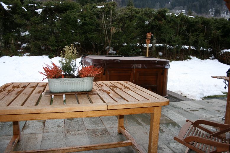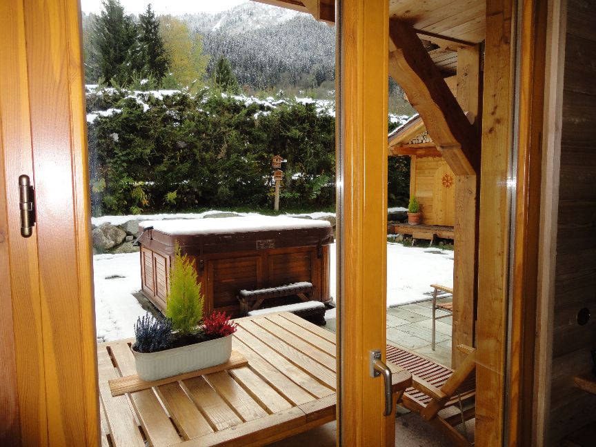 jacuzzi extérieur face au Mont-Blanc.